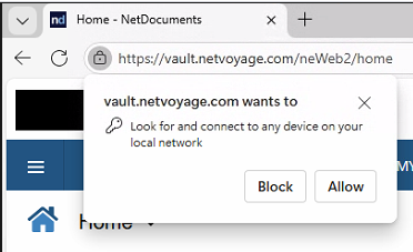 - If you see the following dialog box, click "Allow". This will enable Local Network Access for NetDocuments.